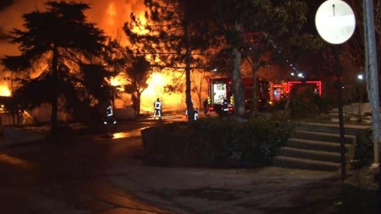 Kafeteryanın çatısının ahşap olması nedeniyle yangın hızla büyüdü.