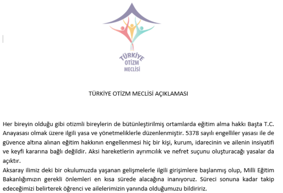 Anadolu Otizm Federasyonu'ndan açıklama: