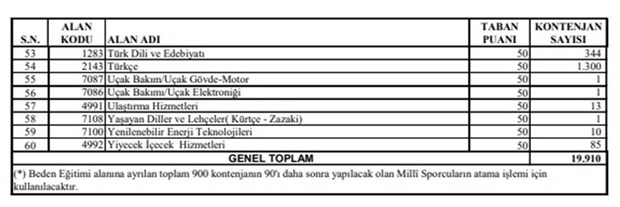 MEB tarafından yayımlanan listeye göre, 60 branşta toplam 19 bin 910 öğretmen ataması gerçekleştirilecek.