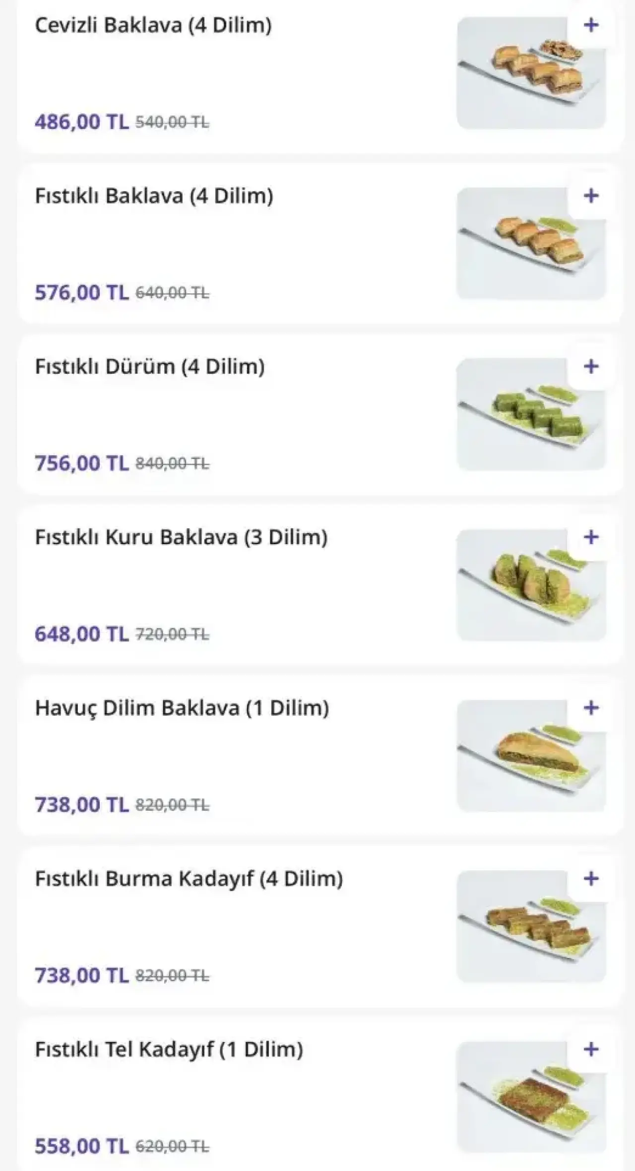 Kullanıcılar, bu uçuk fiyat karşısında tepkilerini dile getirirken, “Altın mı var içinde?” ve “Bir kilo etten pahalı!” gibi yorumlar dikkat çekti. Tatlıcının menüsünde yer alan diğer ürünlerin de benzer şekilde yüksek fiyatlarla satıldığı görülürken, pek çok kişi bu durumu “fahiş fiyat furyasının son örneği” olarak değerlendirdi.