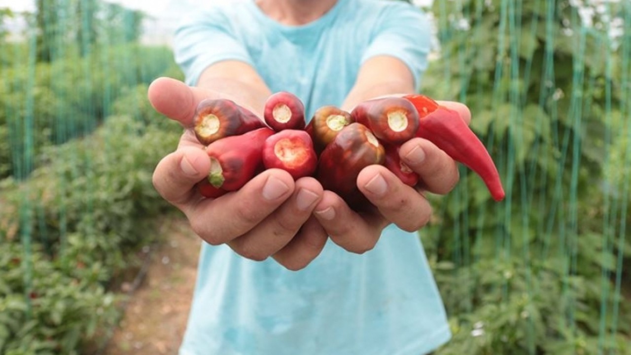 TÜBİTAK onayının ardından tohumu toprakla buluşturan Bozok, bu yıl aldıkları ilk ürünle biberdeki kolay kopma ve arındırılmış aflatoksin özelliğini yakaladı.