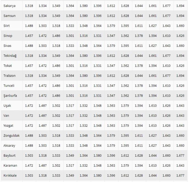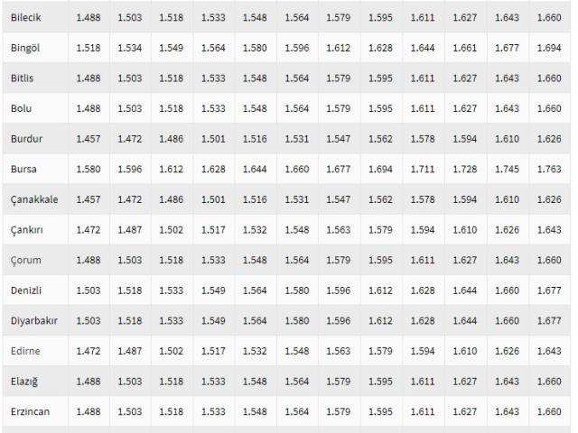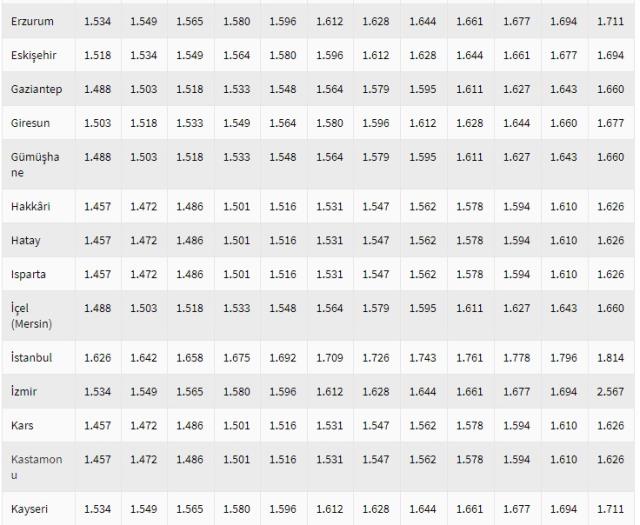 Yapılan düzenli artışlarla yeni yılda trafiğe yeni kayıt edilecek araçlarda en pahalı trafik sigortası 1.626 lira ile İstanbul'da olacak. Kocaeli, Bursa ve Ankara 1.580 lira ile ikinci sırada yer alırken Adıyaman, Aydın, Tunceli, Kilis gibi 19 küçük ilde fiyat 1.457 lira olacak. Trafiğe yeni kaydolacak araçlarda İstanbul ile küçük şehirler arasındaki fark 169 liraya çıkacak.