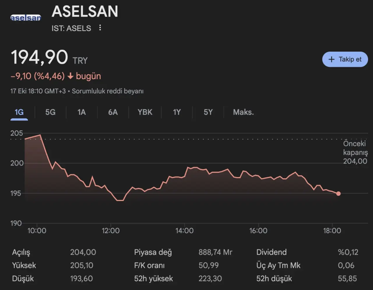ASELSAN, savunma sanayisinin önde gelen kuruluşlarından biri ve Borsa İstanbul’da yoğun işlem gören hisseler arasında yer alıyor. 17 Ekim 2025 sabahında hisse fiyatı 197,60 seviyesine geriledi. Önceki kapanışa göre 6,40 liralık bir düşüş yaşandı. Gün içindeki en düşük işlem fiyatı ise 195,10 oldu. Yatırımcılar teknik olarak 195 TL seviyesini kritik destek olarak belirliyor. Son haftalarda şirketin finansal verileri beklenenden düşük geldi, bu da kısa vadeli satışların önünü açtı. Algoritmik işlemler ve otomatik satış emirleri de hareketliliği artırdı.