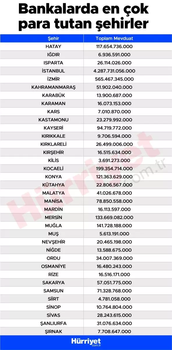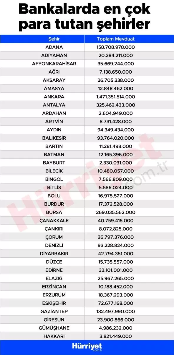 Tasarruflar konusunda en yüksek mevduata sahip olan iki şehir öne çıkıyor. Katrilyonlarca lirayı mevduatta değerlendiren illerin başında İstanbul ve Ankara geliyor.
