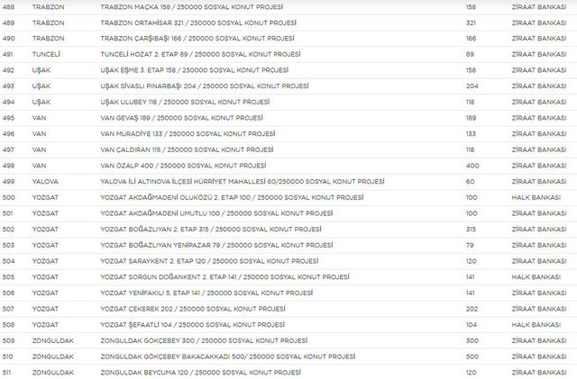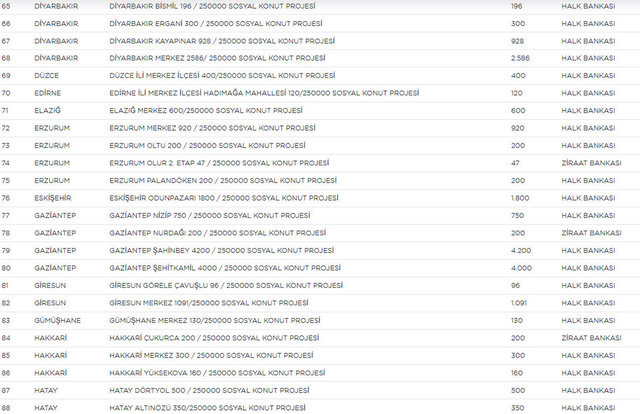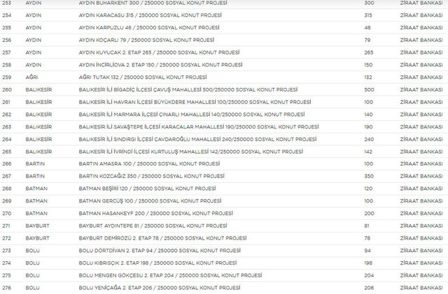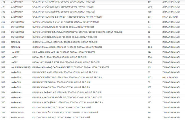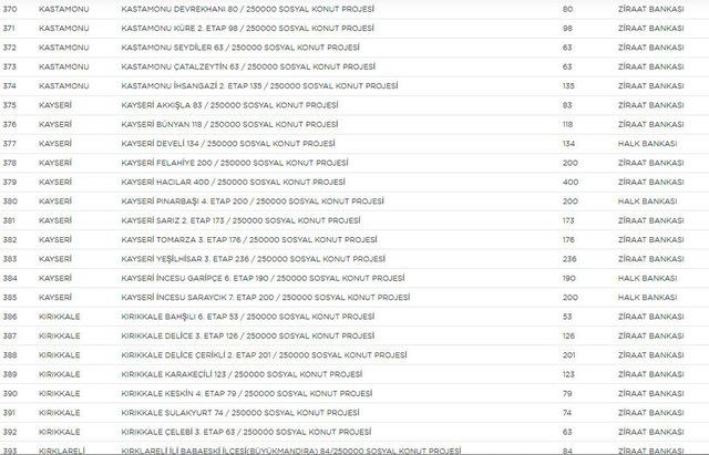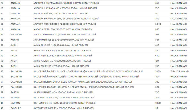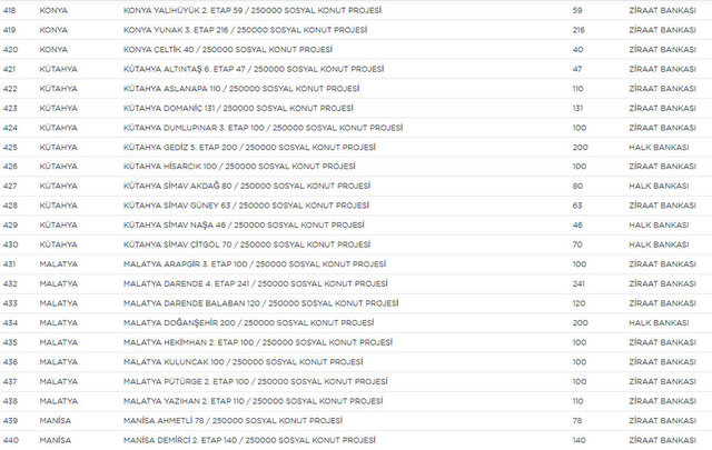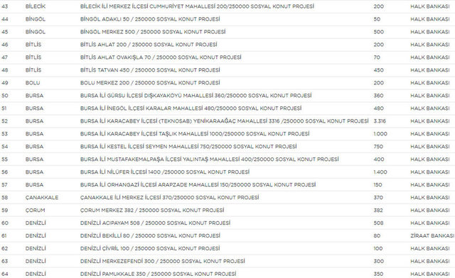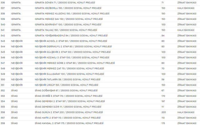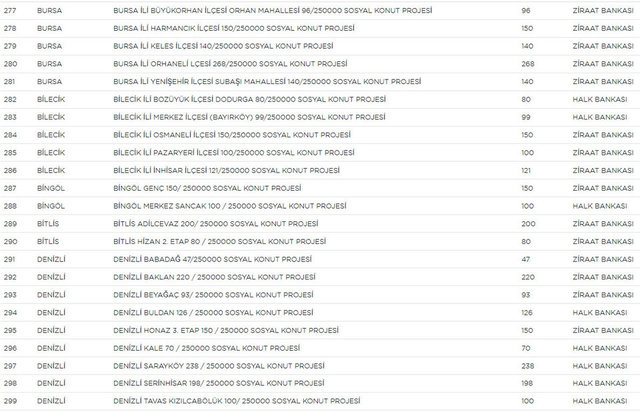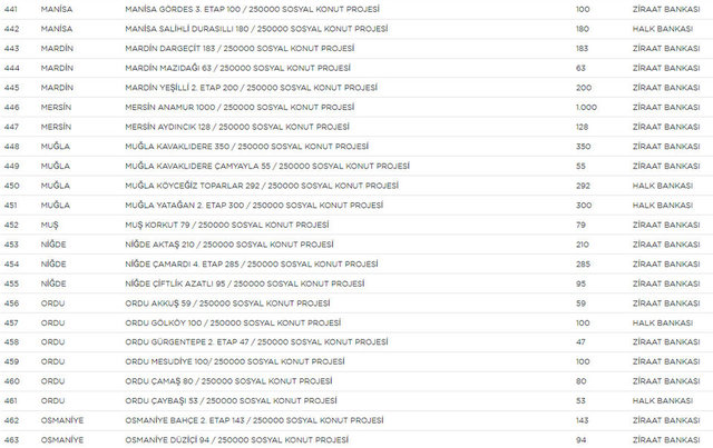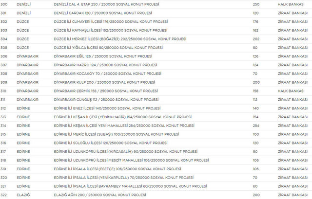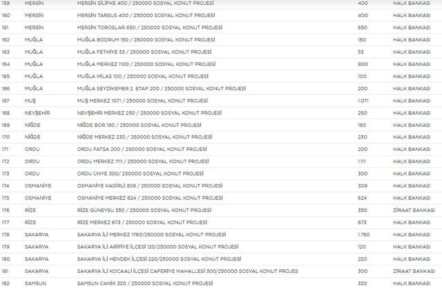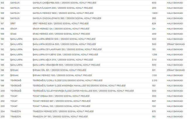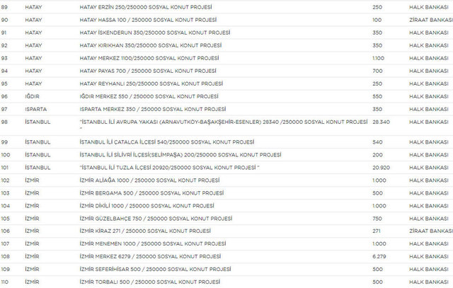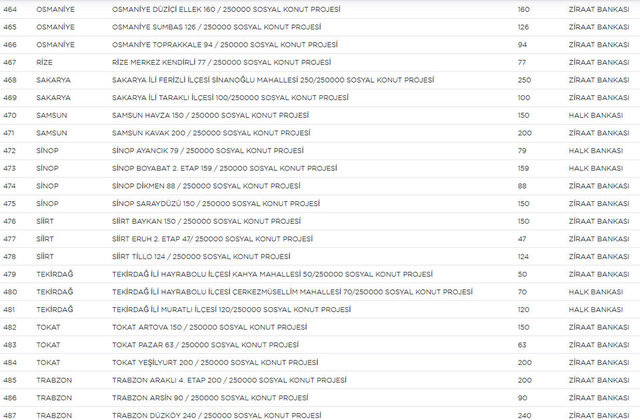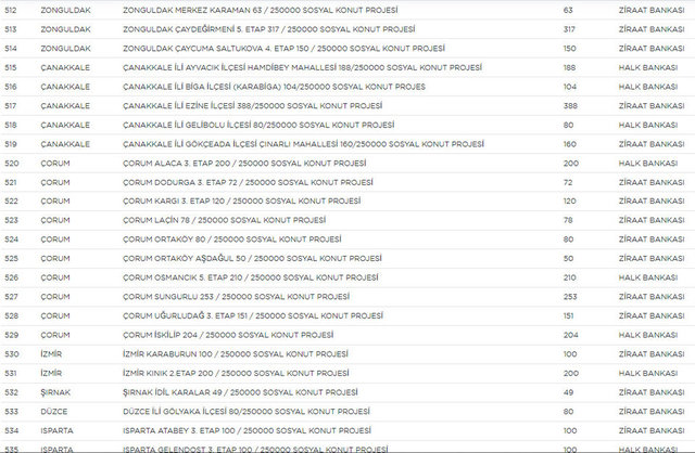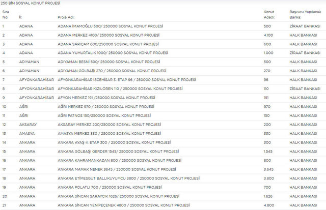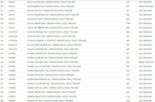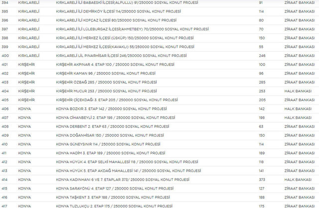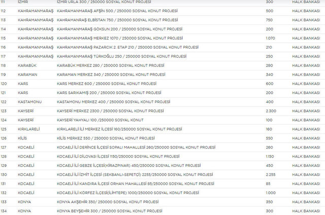 Cumhurbaşkanı Erdoğan'ın açıklamasının ardından TOKİ'nin resmi internet sitesi üzerinden de 81 ile yapılacak sosyal konutların yapılacağı ilçe, konut adedi ve başvuru yapılacak banka bilgisi paylaşıldı. İşte, TOKİ sosyal konutlarının yapılacağı iller ve ilçeler listesi.