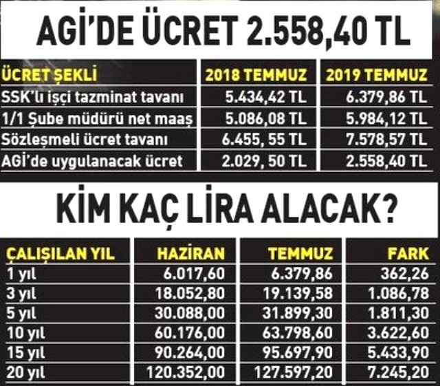 Genelgeye göre 1 Temmuz 2019 ile 31 Aralık 2019 arasında uygulanacak rakamlar şu şekilde belirlendi: