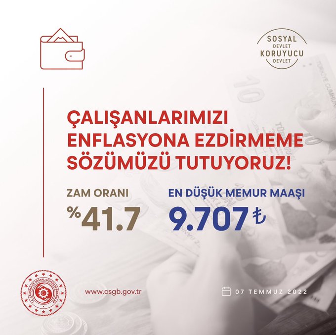 Bakan Bilgin, sosyal medya hesabından yaptığı paylaşımda, "Çalışanlarımızı enflasyona ezdirmeme irademizin bir parçası olarak 6 ay sonra yaptığımız %41, 7’lik ikinci memur maaş artışıyla birlikte zamlı maaşlar hesaplara yatıyor. Hayırlı olsun." ifadesini kullandı.