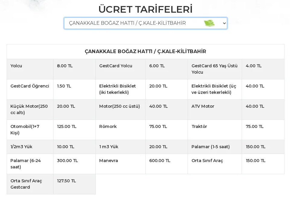 Çanakkale-Kilitbahir feribot ücretleri 20 Nisan 2022 zamlı tarife şöyle: