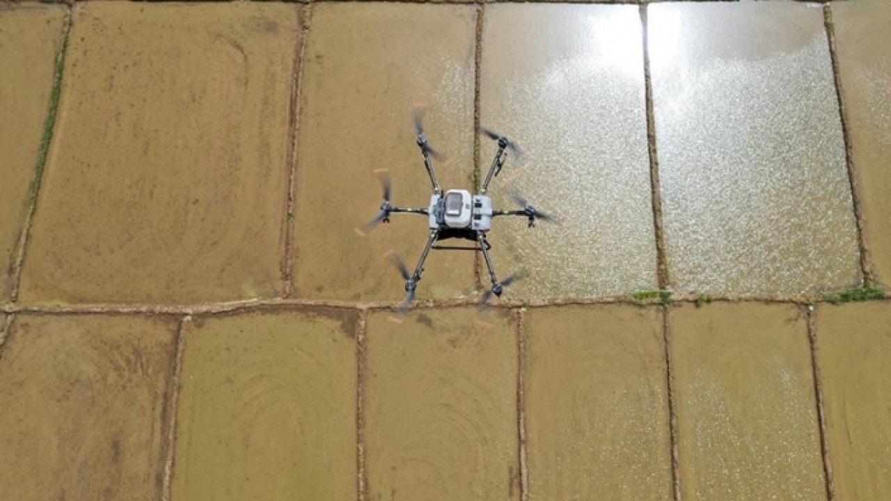 Yeşilli köyünde dron ile yapılan çeltik ekimine Sulakyurt Kaymakamı Kerem Tunçer ile İl Tarım ve Orman Müdürü Sırrı Yılmaz da katıldı.