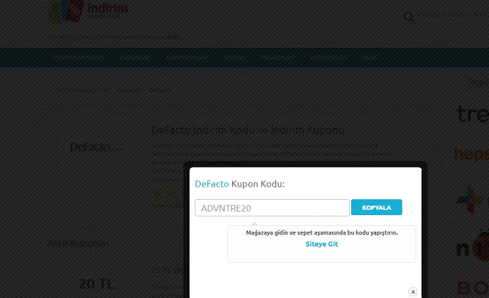 Yapılabilecek diğer seçenek ise ‘Mağazaya Git’ seçeneğidir. Bu butona tıklayarak sitedeki mağazalara gidersiniz ve kampanyadaki ürünlere yönlendirilirsiniz. Sonrasında bu sekmedeki ‘İndirim Kodu’ butonuna giriş yapın. Bu butona tıkladığınızda, karşınıza kodunuz çıkacaktır. Hemen sağ tarafında yer alan ‘Kodu Kopyala’ yazısına basılır. Sonrasında ise yapmanız gereken tekrar ‘Mağazaya Git’ butonuna basmaktır.