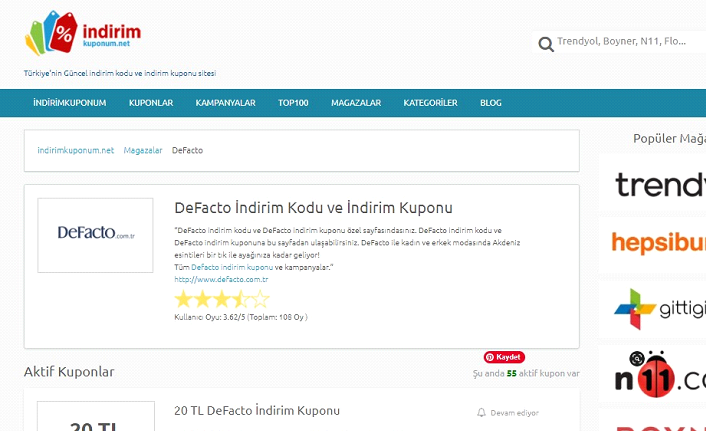 DeFacto İndirim Kodu ve bunun gibi tüm online alışveriş sitelerinin indirim kuponlarına ve kodlarına ulaşabilmek için özenle hazırlanmış ve sürekli güncellenen https://indirimkuponum.net/ adresinden destek alabilirsiniz. Aynı zamanda kuponlar ve kodlar hakkındaki aklınıza takılan tüm soru ve görüşler için de her zaman bu site üzerinden hizmet alınabilmektedir.