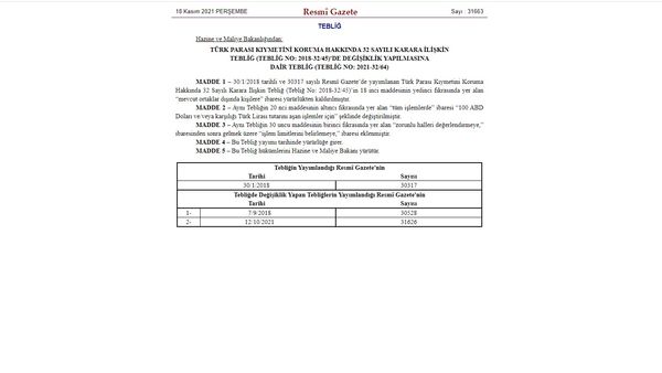 Türk Lirası, dolar ve euro karşısında hızla değer kaybederken döviz alım satımıyla ilgili yeni bir karar alındı. Karar Resmi Gazete'de yayımlandı.