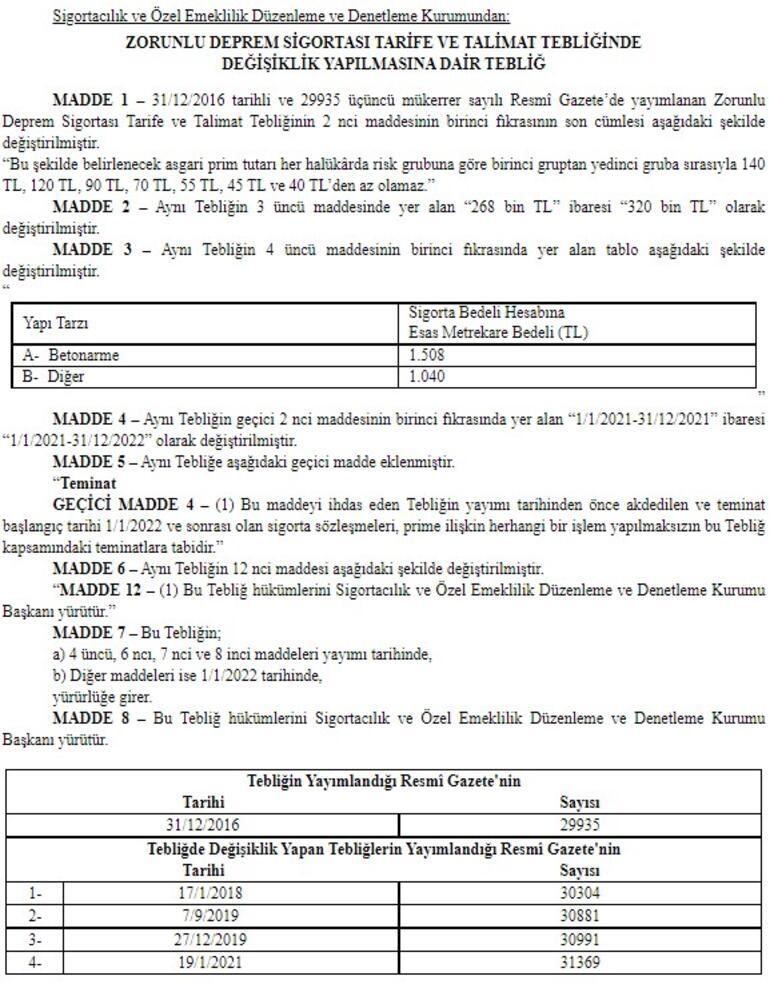 Zorunlu Deprem Sigortası'nda (DASK) 2022 yılı tarifeleri belli oldu.