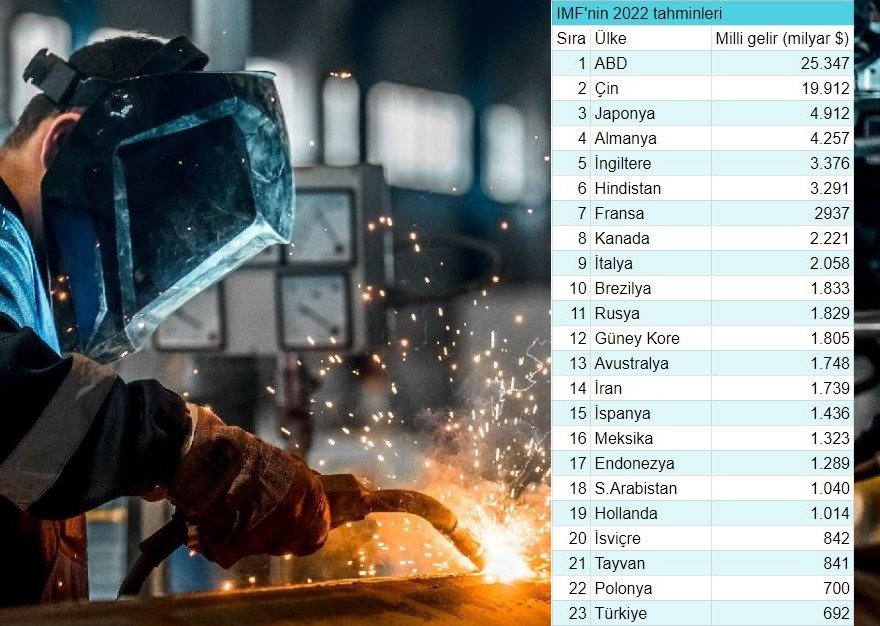 IMF’nin tahminlerine göre ise, 2022 yılında Türkiye, 692, 4 milyar dolarlık milli geliriyle dünyada 23. sıraya gerileyecek.