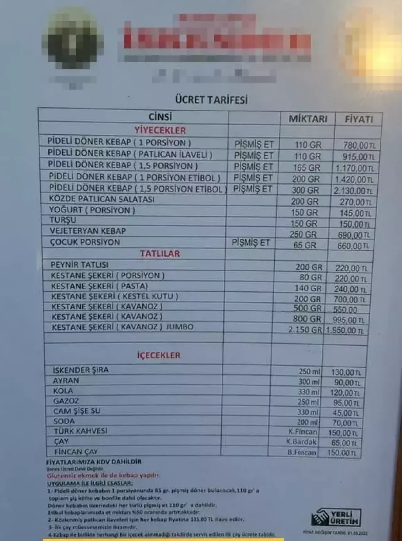 Restoran girişlerinde yer alan “Kebap ile birlikte herhangi bir içecek alınmadığı takdirde servis edilen ilk çay ücrete tabidir” uyarısı müşterileri şaşırtıyor. Tepki çeken bir diğer detay ise çay fiyatları. Küçük bir bardak çayın 65 TL, fincan çayın ise tam 150 TL olması, sosyal medyada büyük yankı uyandırdı.