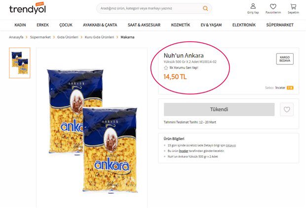 Durumu fırsat olarak değerlendirmek isteyenler ürünlere zam yaptı. Ünlü e-ticaret sitesi Trendyol'un iki paket Ankara makarnayı 14, 50 liraya sattığı görüldü. Normalde iki paketi 6 lira olan ürünün fiyatının artması tepkilere yol açtı.