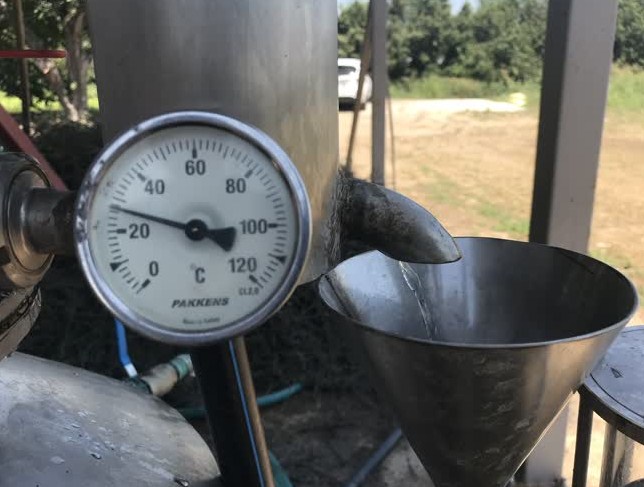 Kazandaki sıcaklığın belli bir dereceye çıkması sonrası lavanta, yağı ve suyunu bırakıyor. Şişelenen lavanta yağları, laboratuvarda kalite açısından analiz ediliyor.