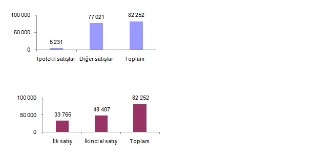 Türkiye genelinde ipotekli konut satışları bir önceki yılın aynı ayına göre %85, 8 oranında azalış göstererek 5 231 oldu. Toplam konut satışları içinde ipotekli satışların payı %6, 4 olarak gerçekleşti. İpotekli satışlarda İstanbul 1 163 konut satışı ve %22, 2 pay ile ilk sırayı aldı. Toplam konut satışları içerisinde ipotekli satış payının en yüksek olduğu il %19 ile Eskişehir oldu.