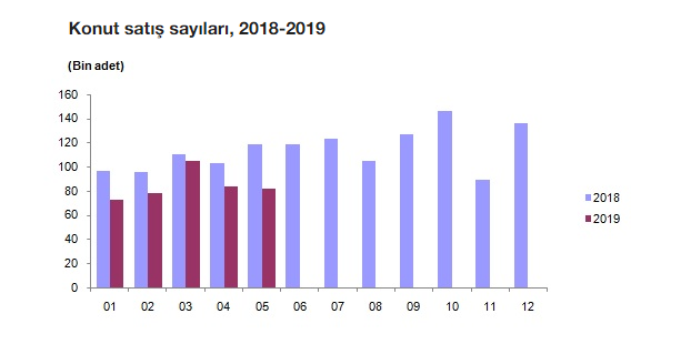 Türkiye genelinde konut satışları 2019 Mayıs ayında bir önceki yılın aynı ayına göre %31, 3 oranında azalarak 82 252 oldu. Konut satışlarında, İstanbul 15 895 konut satışı ve %19, 3 ile en yüksek paya sahip oldu. Satış sayılarına göre İstanbul'u, 8 240 konut satışı ve %10 pay ile Ankara, 5 091 konut satışı ve %6, 2 pay ile Antalya izledi. Konut satış sayısının düşük olduğu iller sırasıyla 4 konut ile Ardahan, 10 konut ile Hakkari ve 26 konut ile Bayburt oldu.