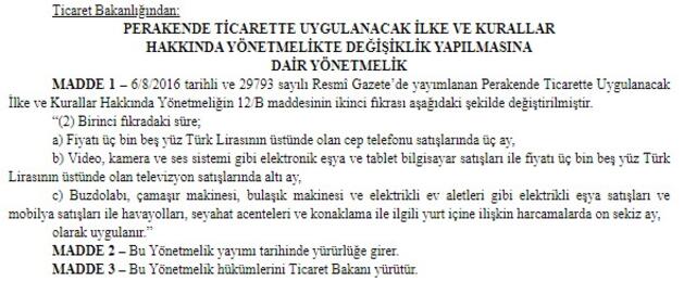 Ticaret Bakanlığı, Perakende Ticarette Uygulanacak İlke ve Kurallar Hakkındaki yönetmelikte değişiklik yaptı.
