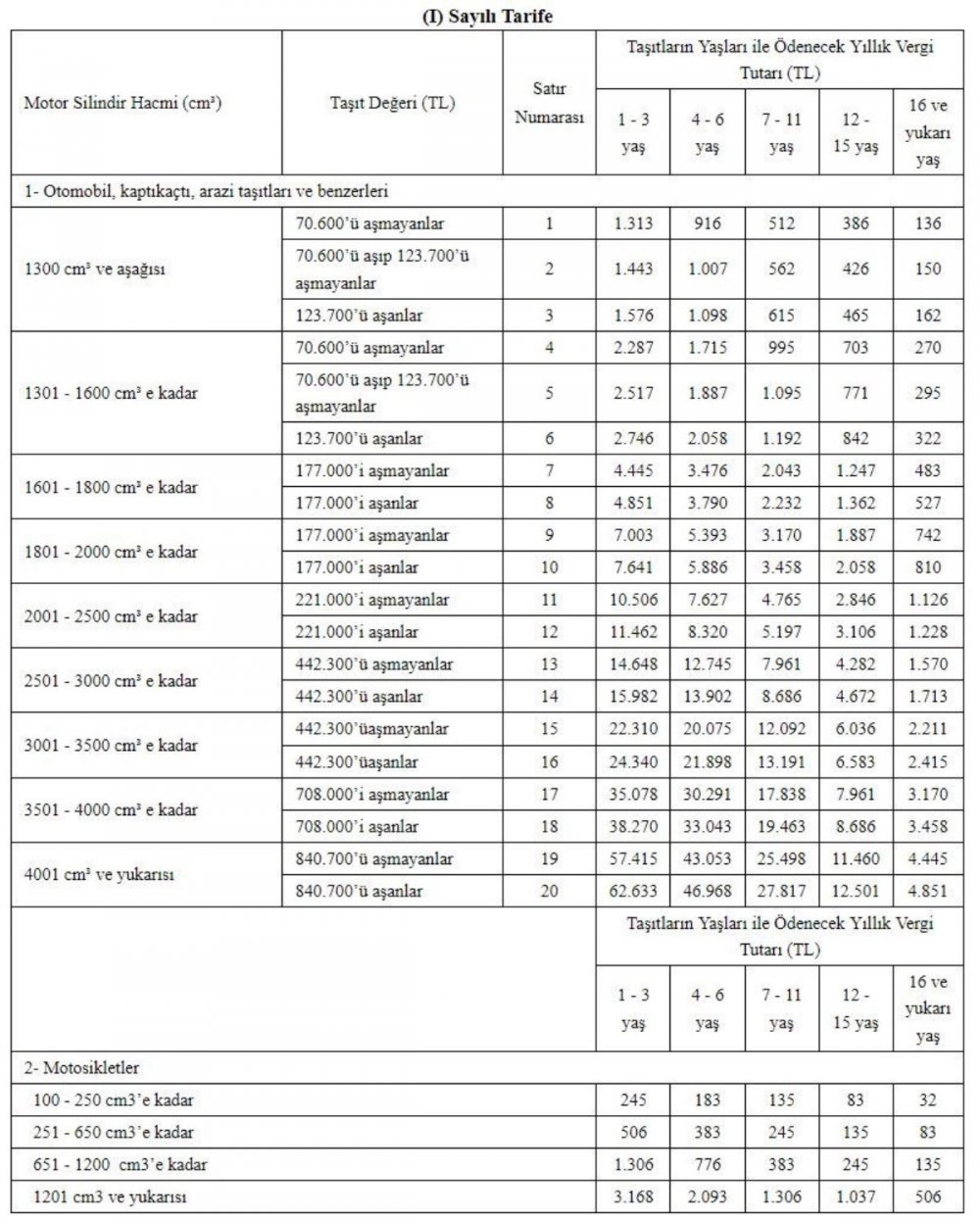 Motorlu taşıtlar vergisine de yüzde 25 oranında zam yapıldı.