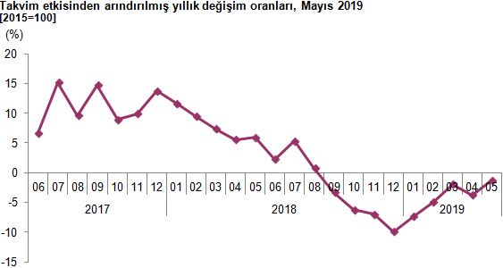 Sanayinin alt sektörleri incelendiğinde, 2019 yılı Mayıs ayında madencilik ve taşocakçılığı sektörü endeksi bir önceki yılın aynı ayına göre %2, 5 ve imalat sanayi sektörü endeksi %1, 8 azalırken elektrik, gaz, buhar ve iklimlendirme üretimi ve dağıtımı sektörü endeksi %4, 1 arttı.
