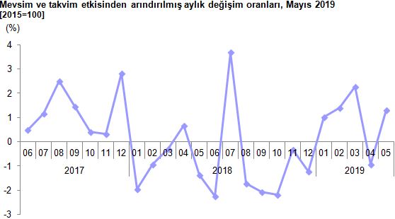 Sanayinin alt sektörleri incelendiğinde, 2019 yılı Mayıs ayında madencilik ve taşocakçılığı sektörü endeksi bir önceki aya göre %5, 2, imalat sanayi sektörü endeksi %1 ve elektrik, gaz, buhar ve iklimlendirme üretimi ve dağıtımı sektörü endeksi %2, 9 arttı.