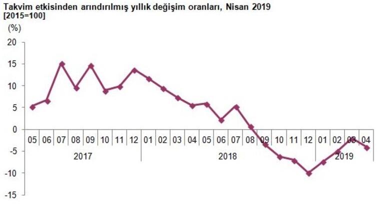 Sanayinin alt sektörleri (2015=100 referans yıllı) incelendiğinde, 2019 yılı Nisan ayında madencilik ve taşocakçılığı sektörü endeksi bir önceki yılın aynı ayına göre %9, 3 ve imalat sanayi sektörü endeksi %4, 2 azalırken elektrik, gaz, buhar ve iklimlendirme üretimi ve dağıtımı sektörü endeksi %0, 7 arttı.