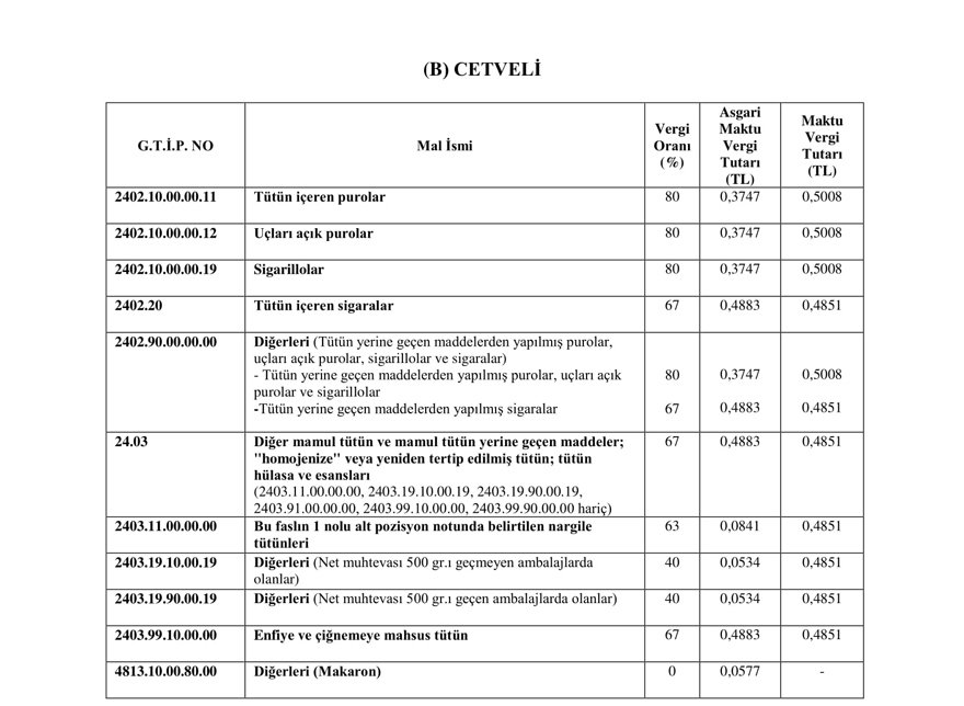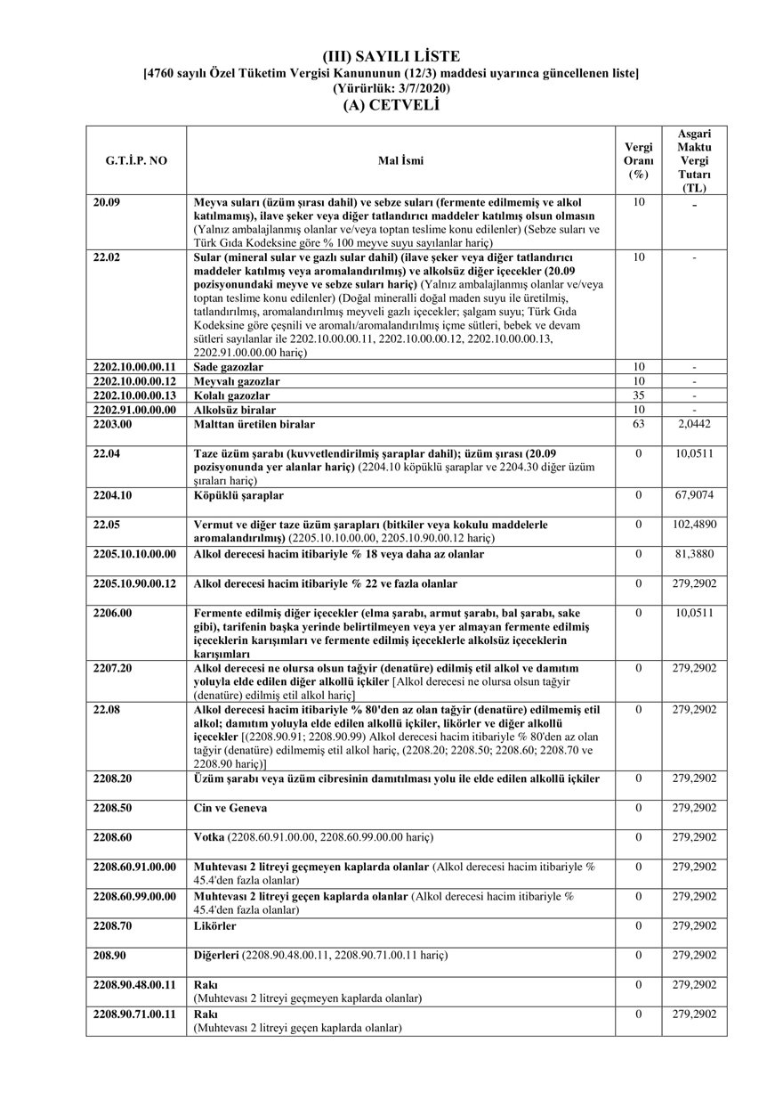 Bira, rakı ve sigaraların maktu ÖTV oranı yüzde 6.89 arttı.