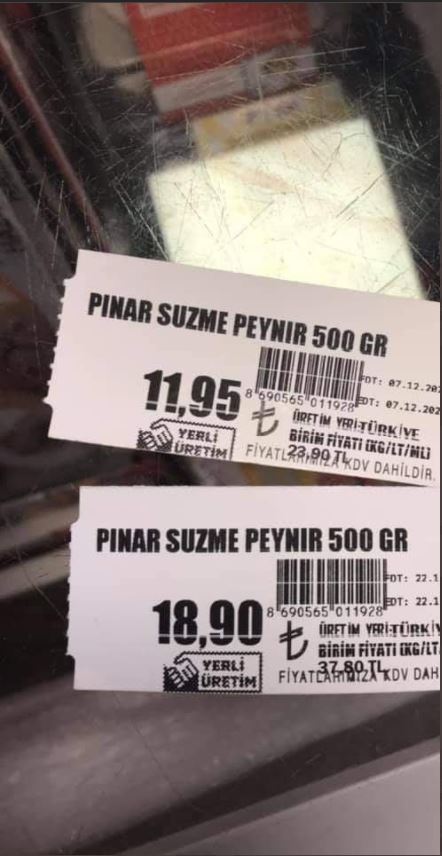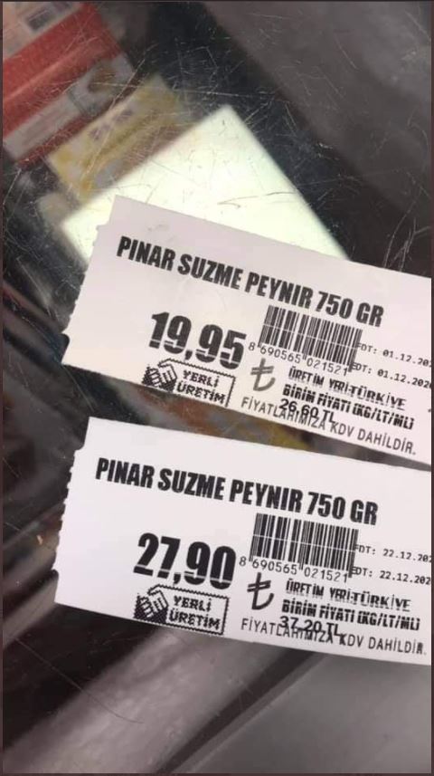 Markettte çalışan bir yurttaşın “Pınar marka süt ve süt ürünlerinin yeni fiyatları” iddiasıyla paylaştığı fiyatlar tepki çekti. Paylaşılanlara göre Sütün litresi 7.90 TL’ye kadar çıktı.