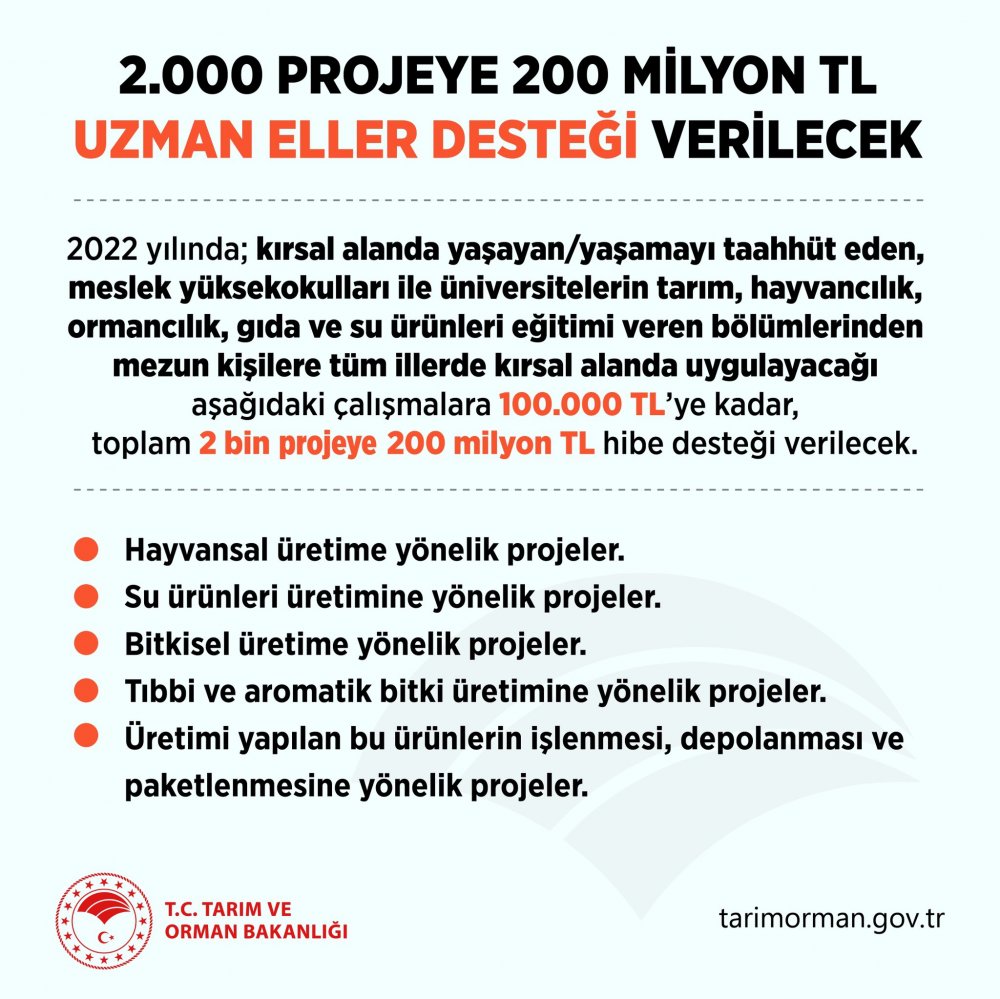 2022 yılında, kırsal alanda yaşayan, meslek yüksekokulları ile üniversitelerin tarım, hayvancılık, ormancılık, gıda ve su ürünleri eğitimi veren bölümlerinden mezun kişilere tüm illerde kırsal alanda destek sağlanacağını duyurdu.
