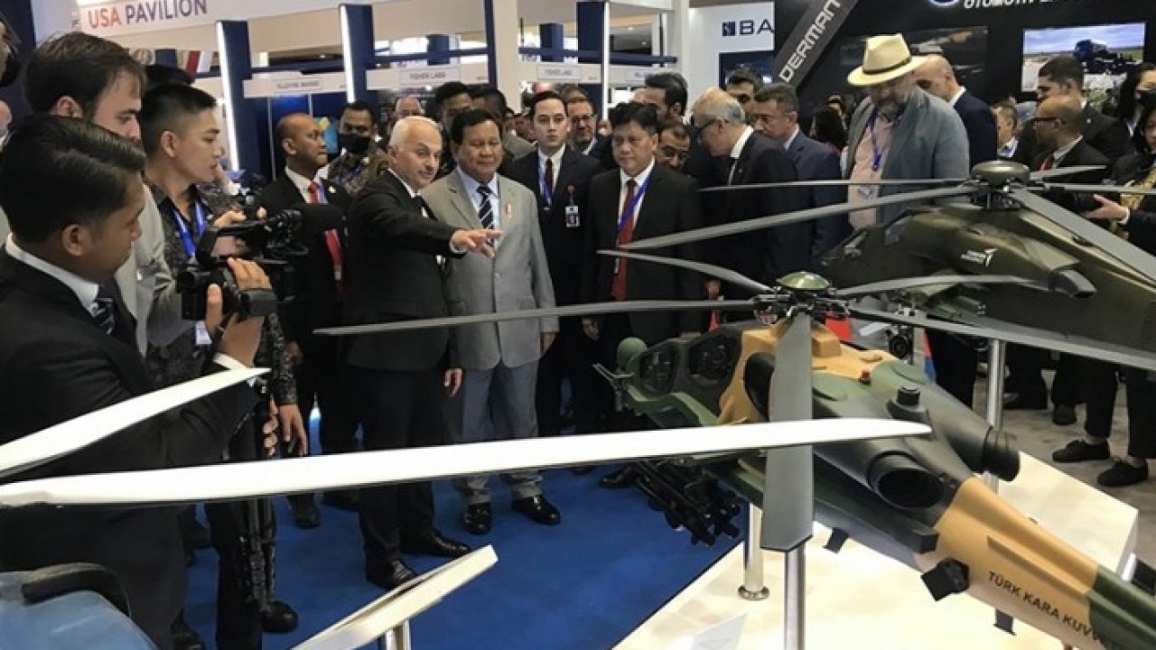 Türk Havacılık ve Uzay Sanayii (TUSAŞ) Genel Müdürü Temel Kotil, Endonezya'nın Cakarta kentinde düzenlenen Indo Defence Expo&Forum 2022 Fuarı'nda ürün portföyünde yer alan helikopter, uçak ve insansız hava araçlarının maketlerini sergiledi.