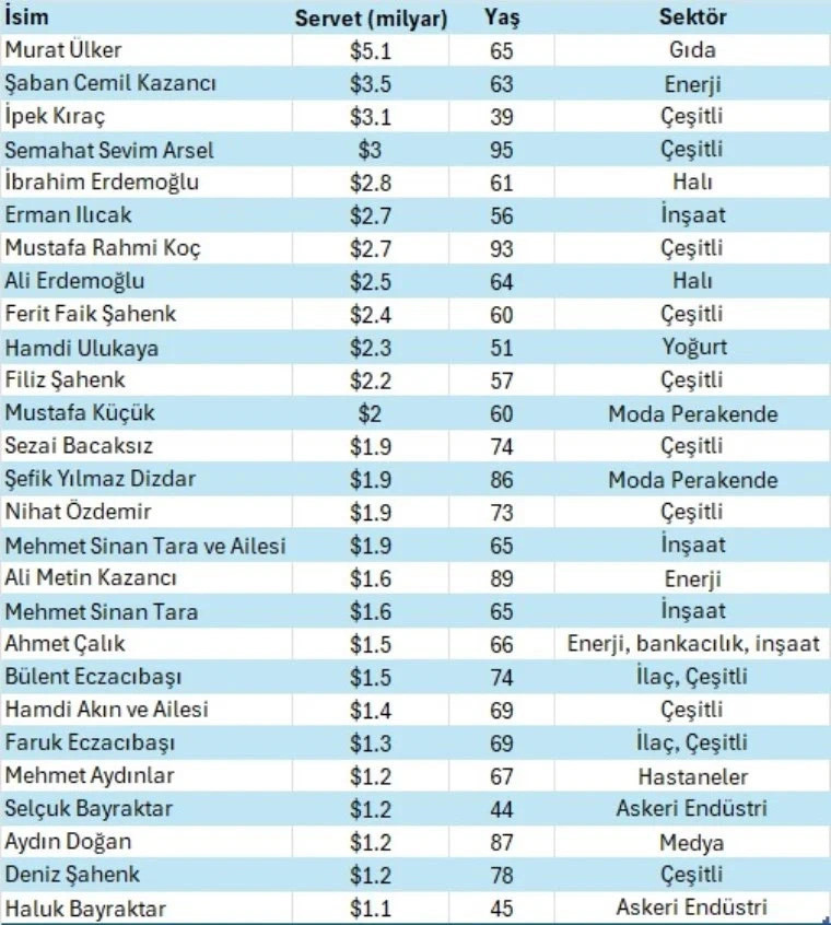 Türkiye'nin en zengin isimleri şöyle sıralandı: