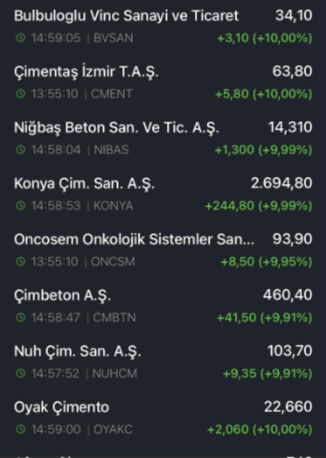 Hal böyleyken borsadan gelen bir görüntü pes artık dedirtti. Depremin acısı yaşanırken borsadaki fırsatçılar, çimento hisselerini tavan yaptırdı. Borsa İstanbul'da açılış seansında, çimento şirketlerinin hisselerinde sert yükselişler görüldü.