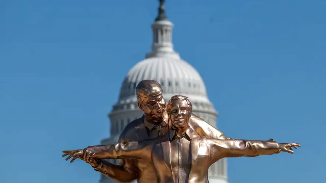ABD’nin başkenti Washington’da bulunan ve ülkenin en sembolik alanlarından biri kabul edilen National Mall, dikkat çekici ve tartışma yaratan bir sanat enstalasyonuna ev sahipliği yapıyor. Parkın ortasına yerleştirilen dev heykel, eski ABD Başkanı Donald Trump ile 2019 yılında hapishanede hayatını kaybeden ve çocuk istismarı suçlamalarıyla gündeme gelen Jeffrey Epstein’ı tasvir ediyor.