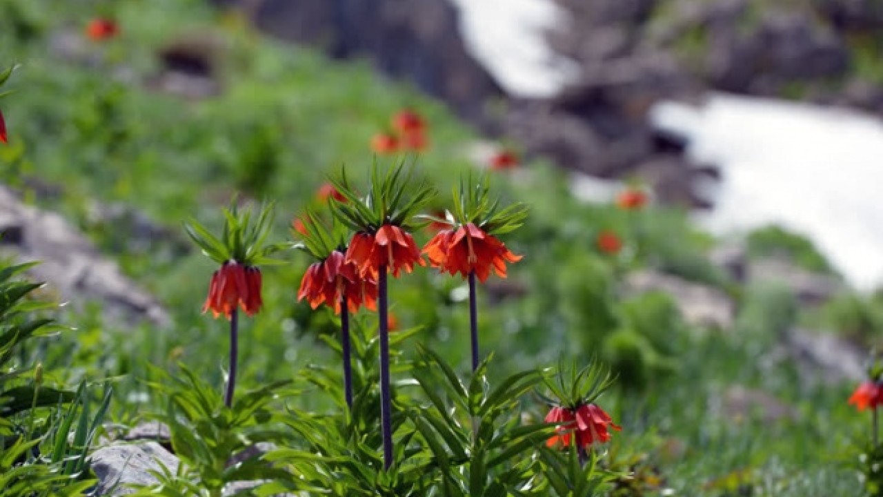 Tunceli'de baharda dağların zirvelerindeki karların erimesiyle boy vermeye başlayan ters laleler, görenleri büyülüyor.