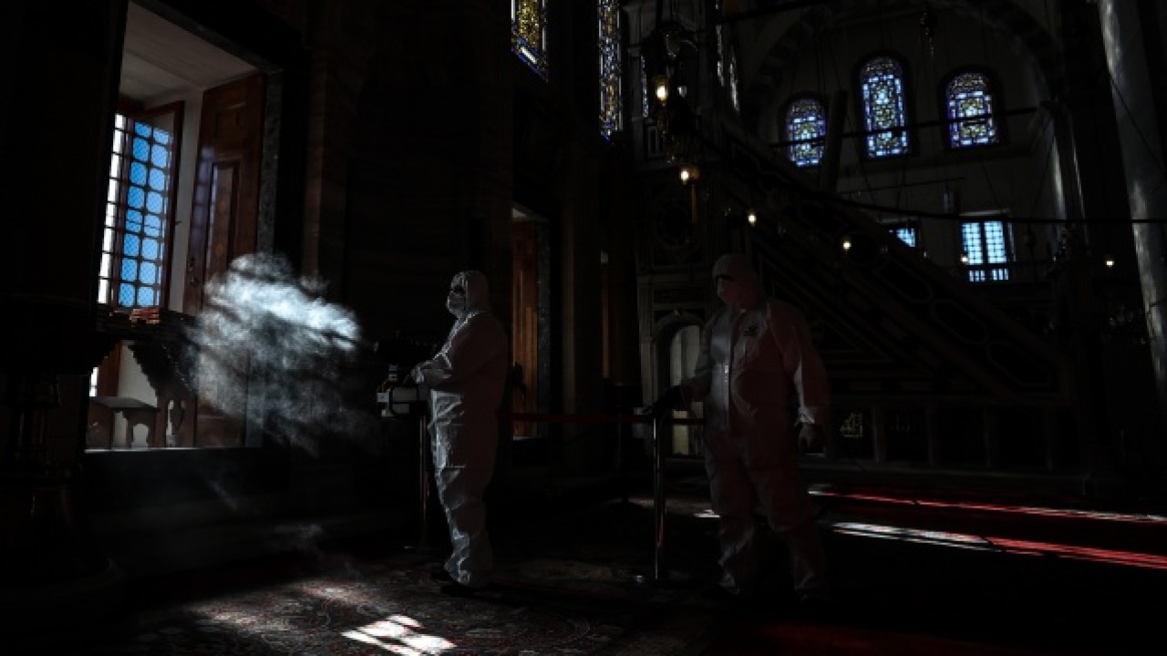 Fatih Belediyesi ekipleri, yeni tip koronavirüs (Kovid-19) önlemleri kapsamında, selatin camilerinin de aralarında bulunduğu 346 camide dezenfeksiyon çalışması gerçekleştiriyor. Belediye ekipleri, Fatih Camisi'ni Sağlık Bakanlığının onay verdiği, insan ve hayvan sağlığına zarar vermeyen malzemelerle dezenfekte etti.