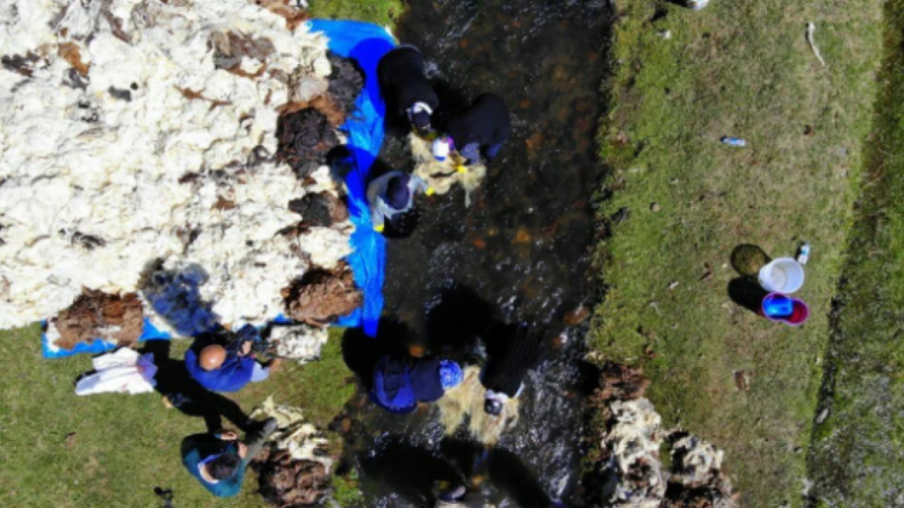 Ehram yapımı için ilk olarak koyun kırkılma döneminde elde edilen yünleri akarsu kenarına getiriyorlar.