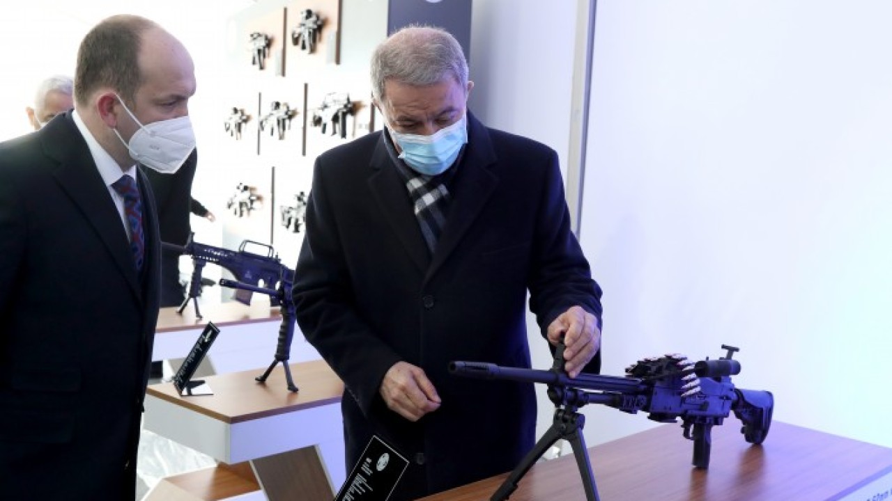 MKEK tarafından üretilen silah ve mühimmatların yer aldığı sergiyi gezen Akar, incelediği ürünler hakkında bilgi aldı.