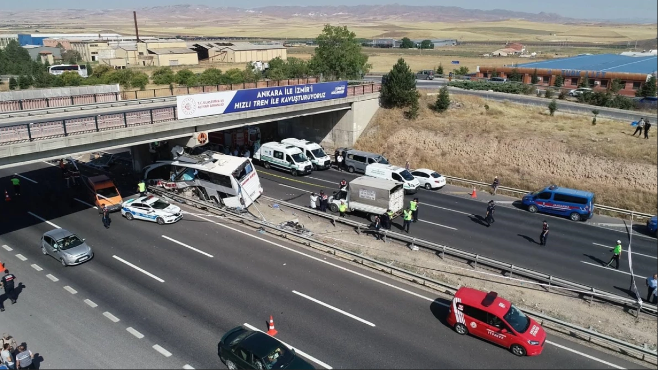 Ankara'da sürücüsünün kontrolünden çıkan yolcu otobüsünün, üst geçidin ayağına çarpması sonucu meydana gelen kazada 9 kişi yaşamını yitirirken 30 kişi ise yaralandı.Sürücünün kontrolünden çıkan yolcu otobüsünün, üst geçidin ayağına çarpması sonucu meydana gelen, kaza ile ilgili ön rapor çıktı.
