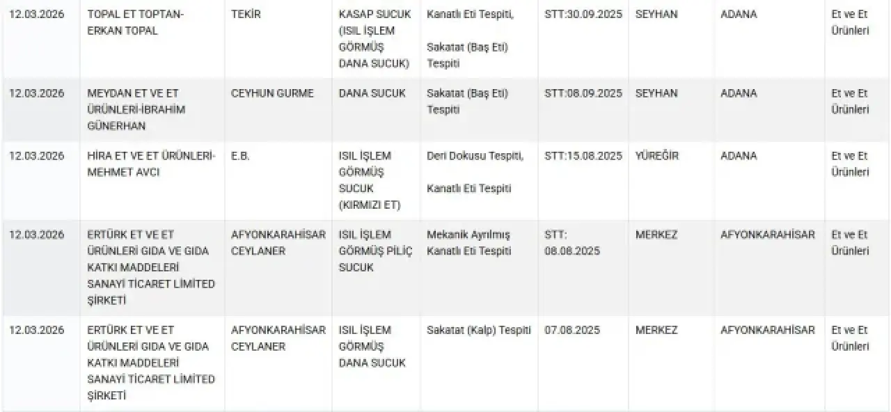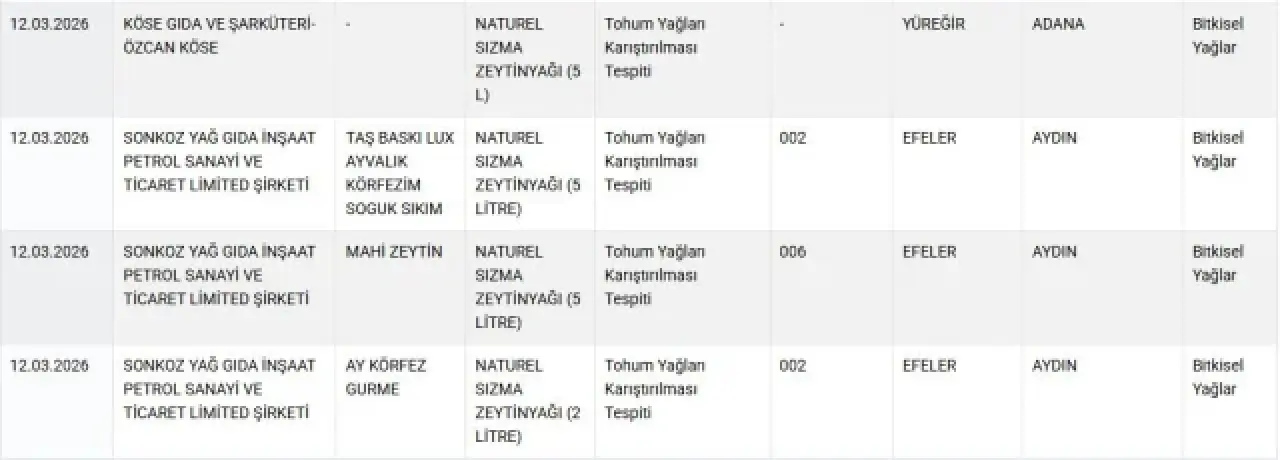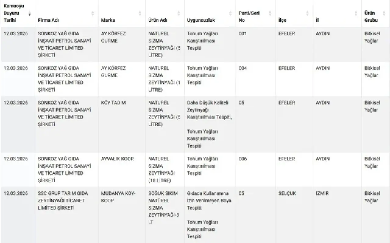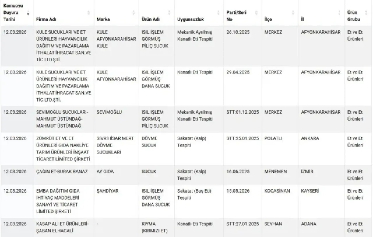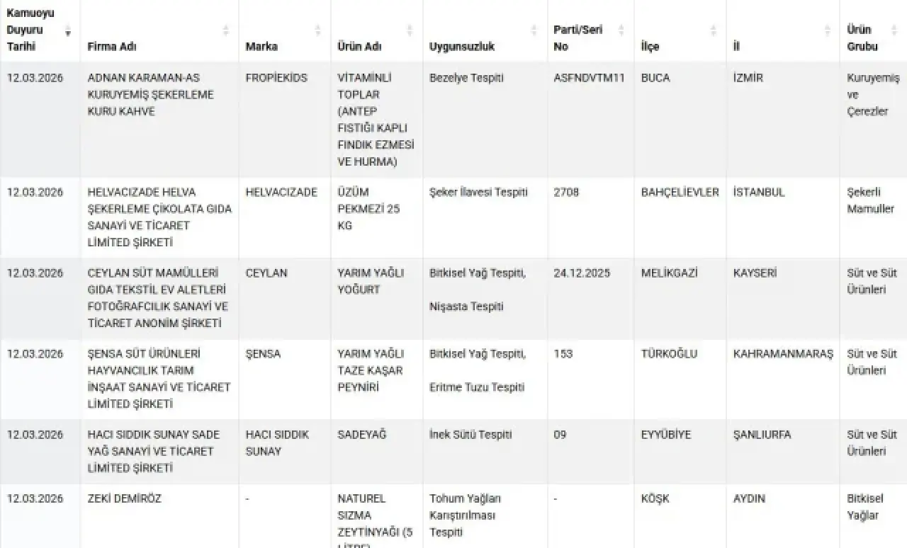 Gıda güvenliği konusunda şeffaflık politikasını sürdüren Bakanlık, uygunsuzluk tespit edilen ürünleri kamuoyuyla paylaşmaya devam ediyor. Açıklanan yeni veriler, tüketicilerin daha dikkatli olması gerektiğini bir kez daha ortaya koydu.