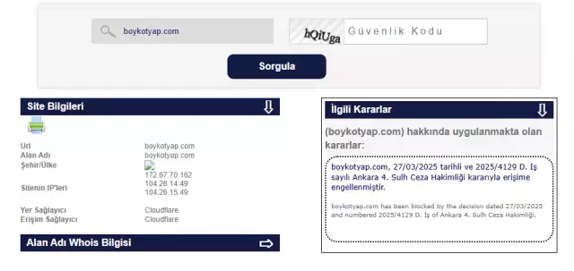 Ancak bu gelişme uzun sürmedi. Ankara 4. Sulh Ceza Hakimliği, 27 Mart 2025 tarihli kararıyla ilgili siteye erişim engeli getirdi. Karar, 2025/4129 sayılı dosya kapsamında alındı.
