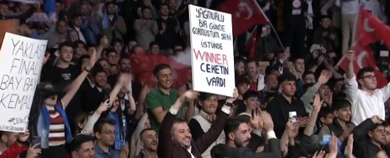 Pankartta, "Yağmurlu bir günde görmüştüm seni, üstünde winner ceketin vardı" yazıyordu.