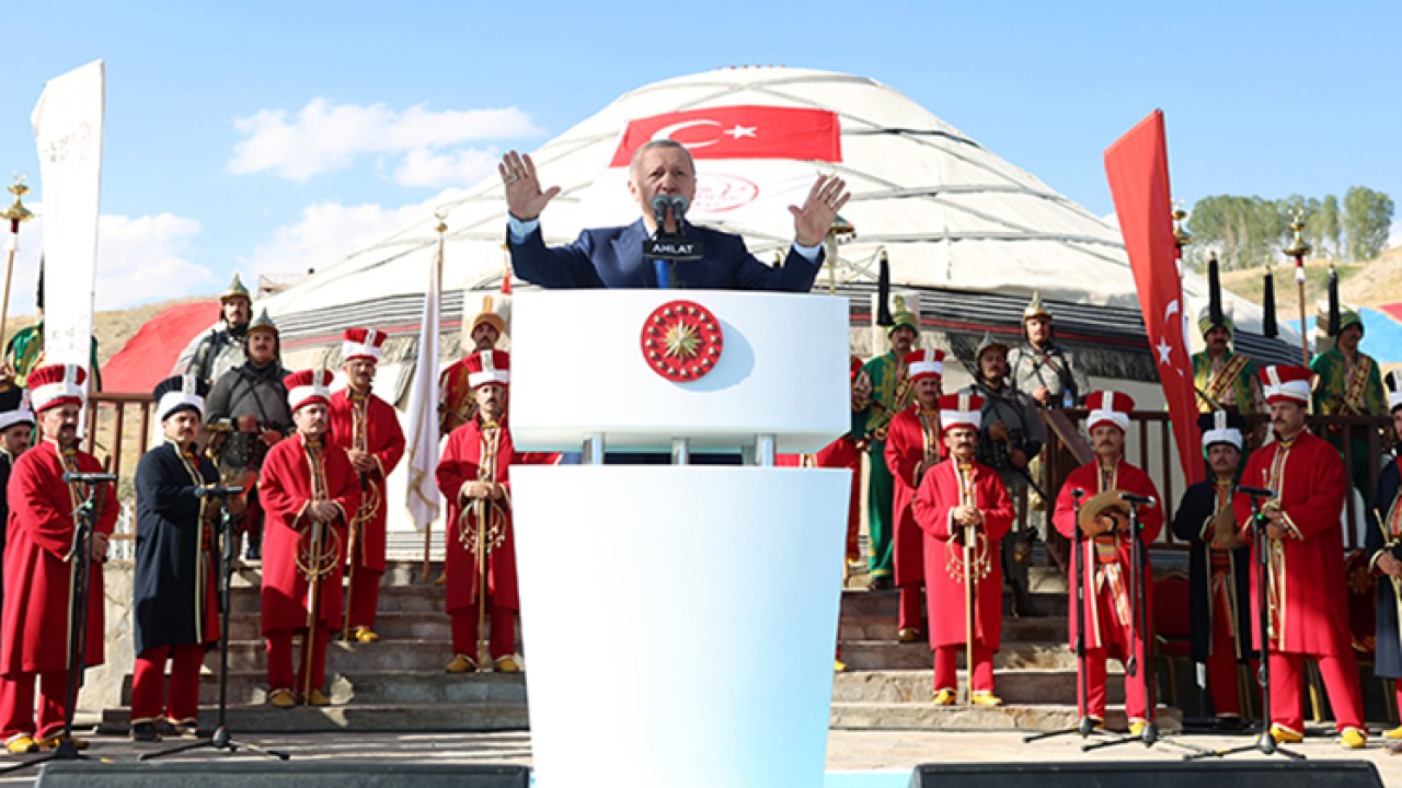 Cumhurbaşkanı Erdoğan, Malazgirt Zaferi'nin 952. yıl dönümü dolayısıyla Ahlat'taki etkinlik alanını ziyaretinde konuştu.
