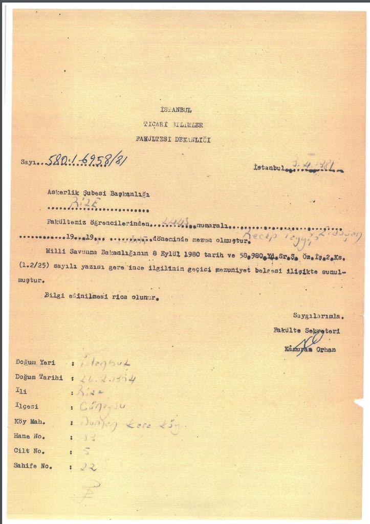 "Üniversite açıklamasında Cumhurbaşkanı Erdoğan'ın gerek öğrencilik dönemine ait gerekse mezuniyetine ilişkin belge ve dokümanın tüm öğrencilerde olduğu gibi üniversitede muhafaza edildiği belirtilmiştir. Ayrıca Hürriyet gazetesinin 25 Mart 2023 baskısında Cumhurbaşkanı Erdoğan'ın üniversiteyi kazandığı belge dahil olmak üzere öğrencilik ve mezuniyetine ilişkin diploma, geçici mezuniyet belgesi, askerlik tehiri için yazılan belgeler gibi birçok belge yayımlanmıştır."