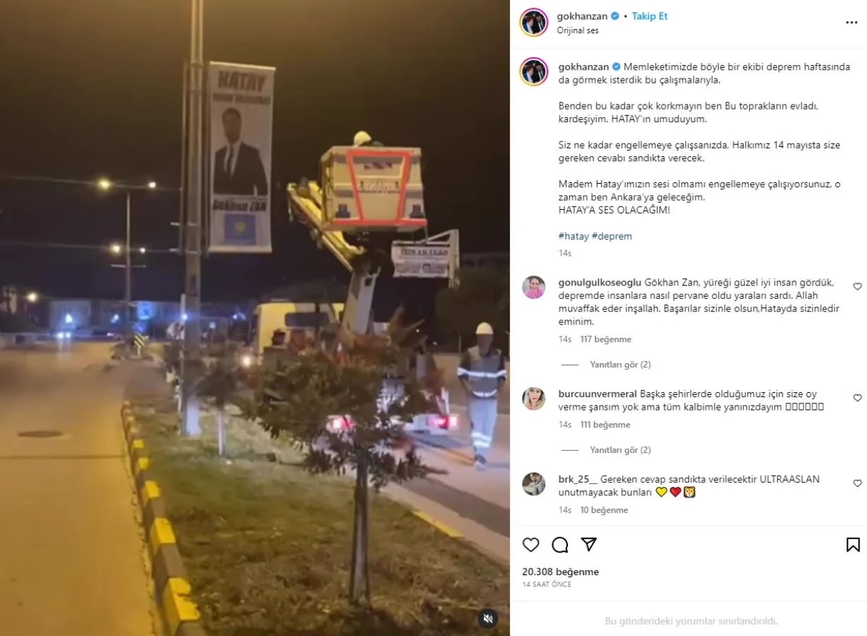Hatay'da büyük yıkıma neden olan depremden sonra yardım çağrılarıyla gündeme gelen, ardından da İYİ Parti'ye katılarak Hatay'dan milletvekili adayı olan eski milli futbolcu Gökhan Zan, sosyal medya hesabından paylaşımda bulundu.