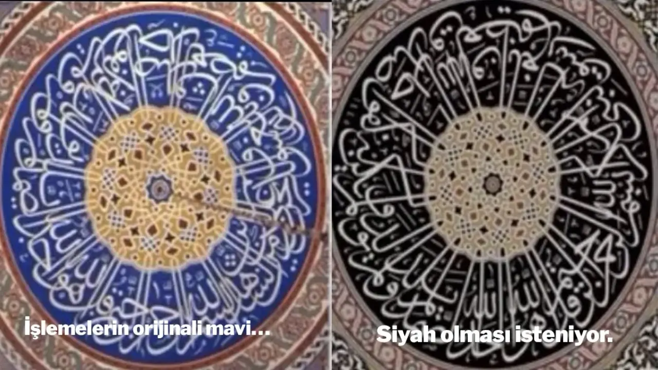 En çok tepki çeken nokta ise kubbede yer alan ve Allah’ın isimlerinin işlendiği sekiz madalyonun kaldırılması. Yerlerine “21. yüzyıl tarzı” yeni hat düzenlemeleri yapılması tartışmaları büyütüyor.
