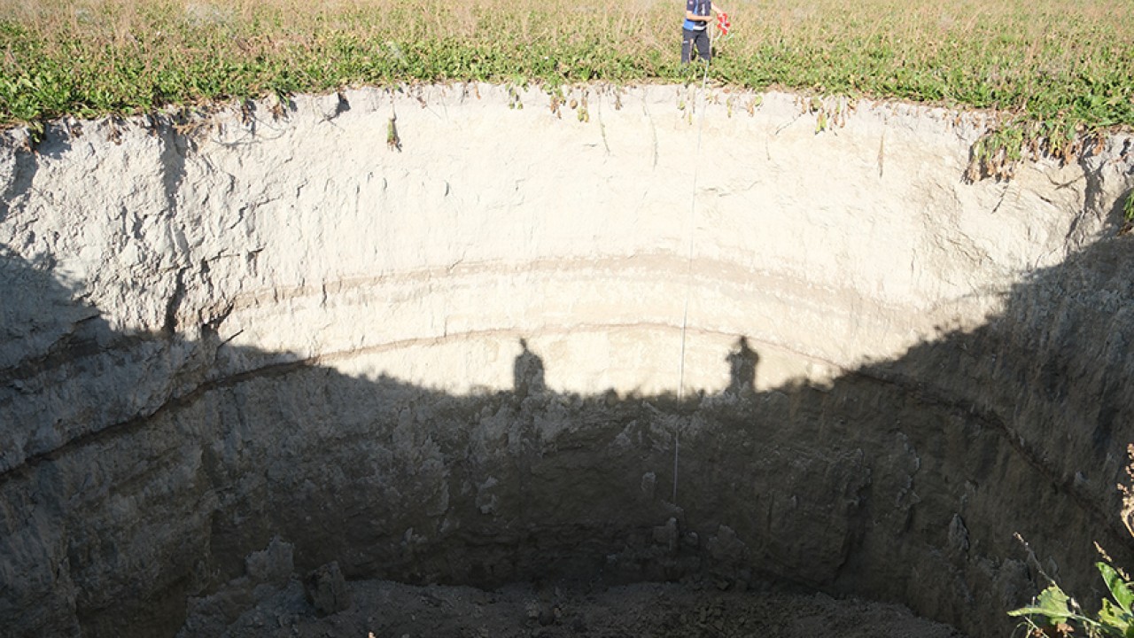 Konya'nın Karapınar İlçesine bağlı Avşar Mevkisindeki pancar tarlasında vatandaşlar, obruk oluştuğunu fark etti.Çapı yaklaşık 27 metre, derinliği ise 12 metreyi bulan obruğu görünce tedirgin olan vatandaşlar, durumu yetkililere bildirdi.