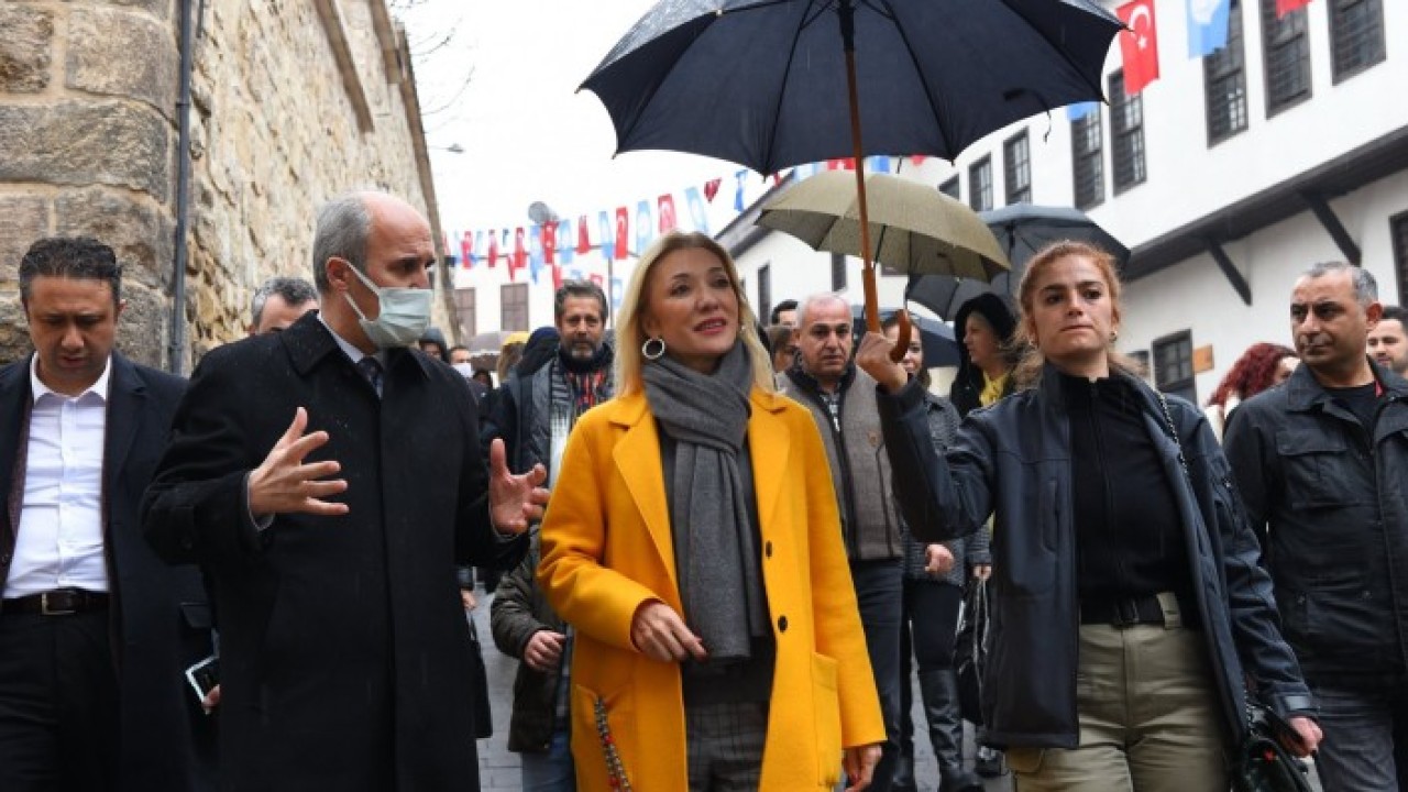 Turizm Bakanı Mehmet Nuri Ersoy'un eşi, kadın polise çantasını taşıtıp, şemsiyesini tutturduğu fotoğrafıyla gündeme geldi.