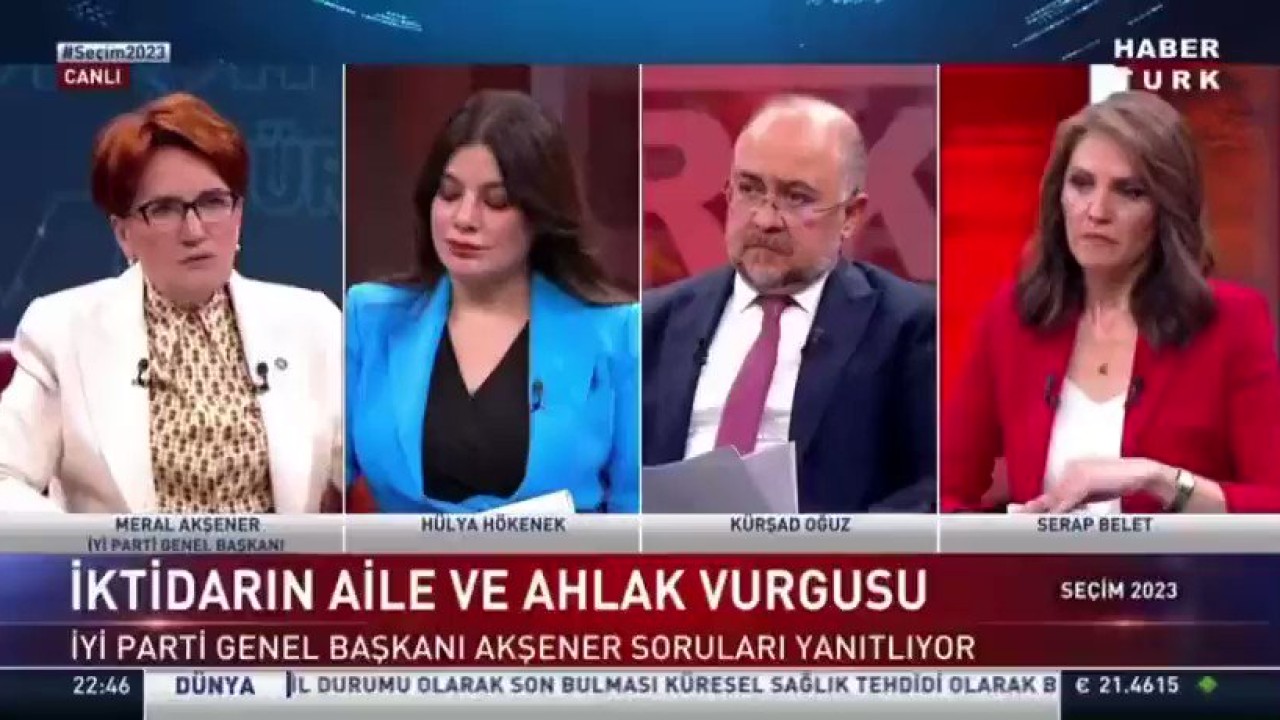 İYİ Parti Genel Başkanı Meral Akşener, Habertürk'te Serap Belet, Kürşad Oğuz ve Hülya Hökenek'in sunduğu Seçim 2023 programına katıldı.